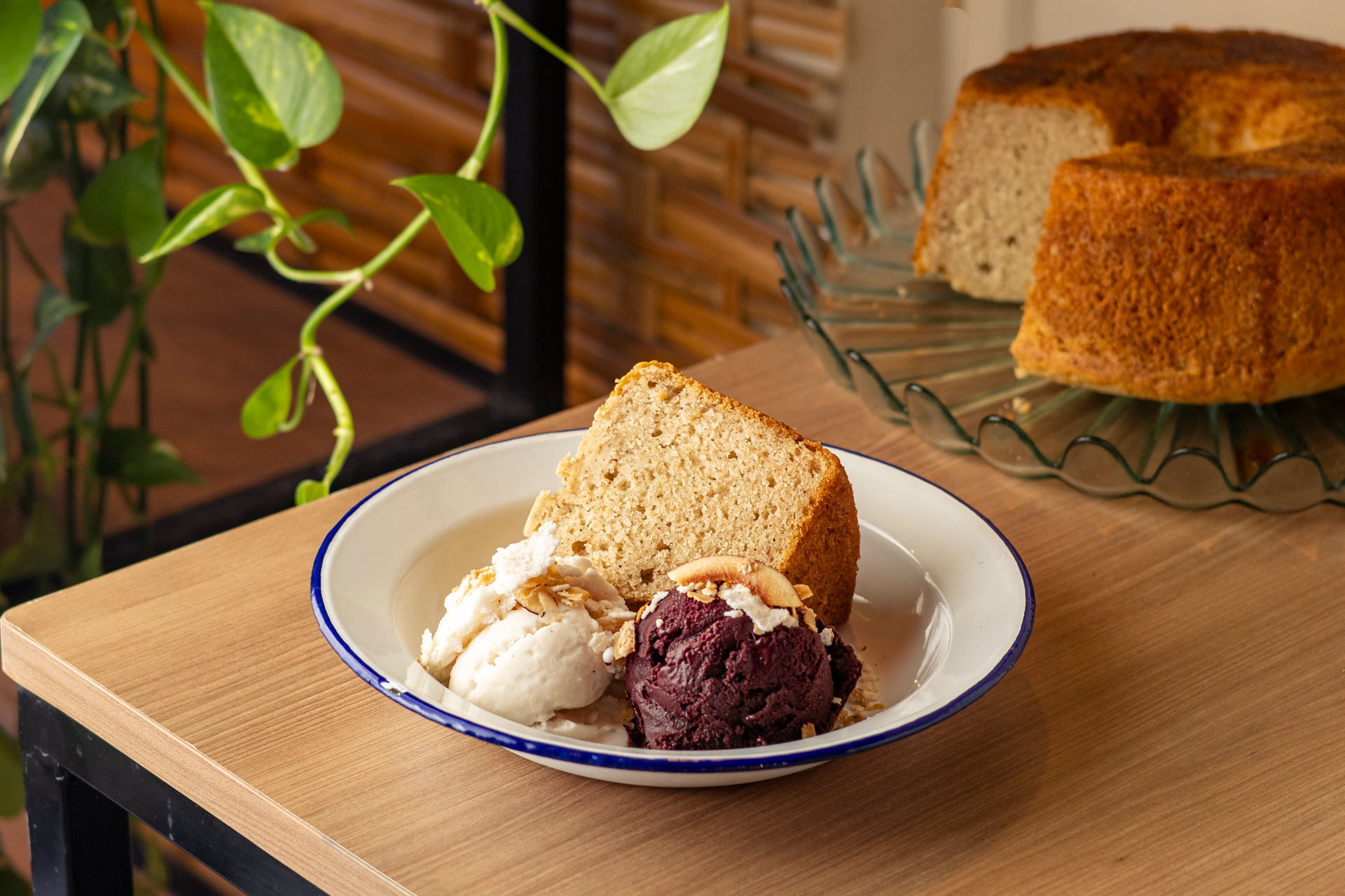 Bem Puro | Bolo do bem - Bolo autoral com ingredientes locais. Acompanha sorvete de tapioca, açaí, lascas de coco e tapioca crocante | Rafaela Dalvoglio