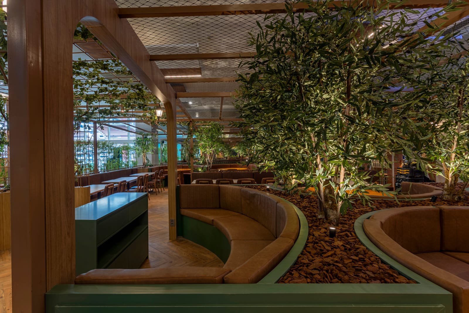 A Trattoria & Forneria também traz diferenciais que ampliam o ambiente familiar: uma brinquedoteca exclusiva, banheiro privativo e sistema acústico próprio, criando uma atmosfera mais reservada e confortável mesmo dentro da praça de alimentação.