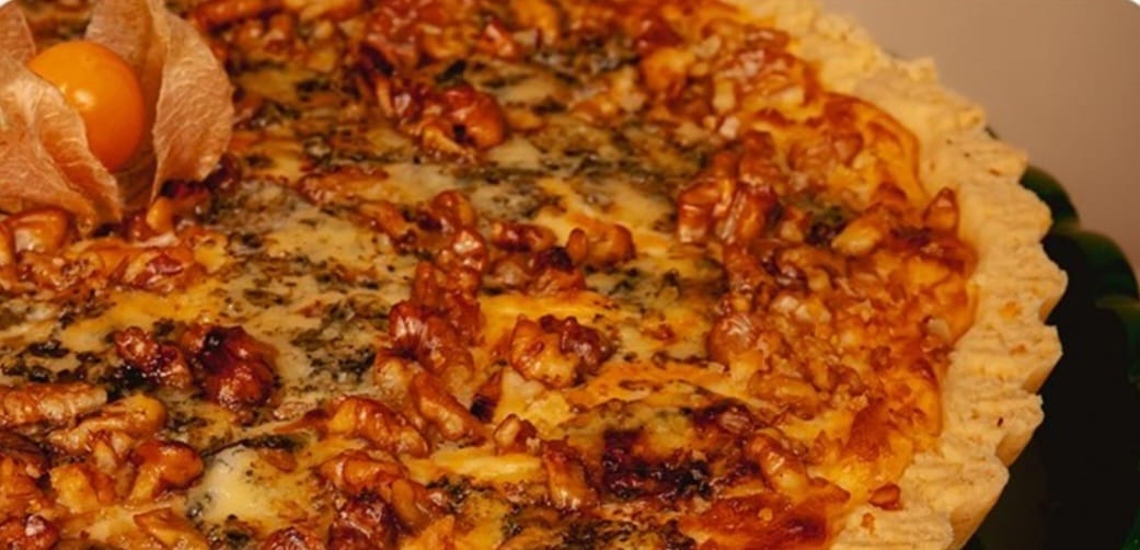 Tradicional na capital baiana, um dos destaques da Vivagula para este Natal são os quiches salgados. O sabor Gorgonzola acompanha praliné de nozes caramelizadas.