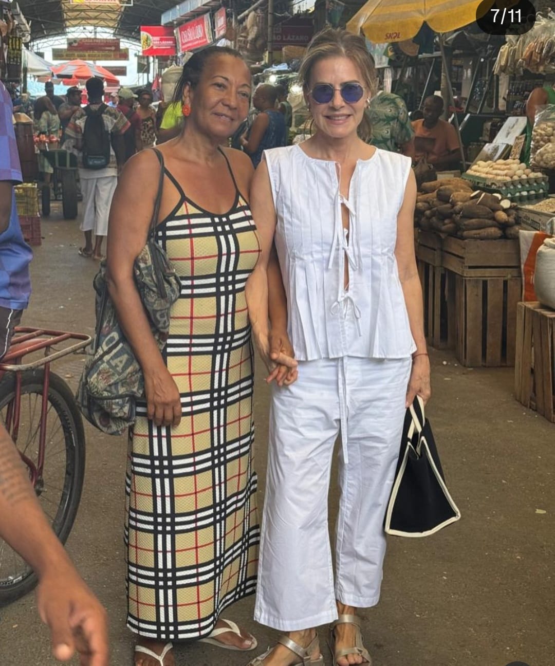 No tour de Maitê: Feira de São Joaquim, que ela ama, conferir as novidades, o Santo Antônio Além do Carmo e por aí vai. A atriz está acompanhada dos amigos Zé Maurício e Machlline, Chris Guimarães.