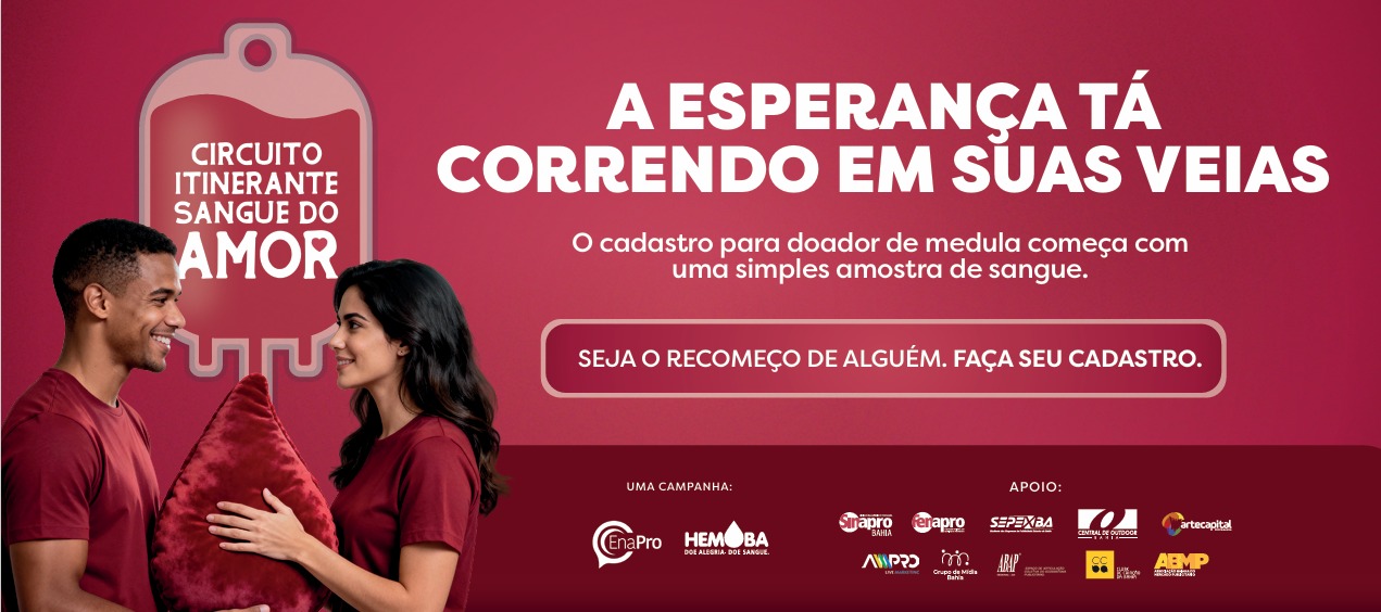 Como desdobramento do Enapro 2025 — Encontro Nacional das Agências de Propaganda, realizado sob o tema “De Humanos para Humanos”, o Sinapro-Bahia e a Fundação Hemoba lançaram o Circuito Itinerante “Sangue do Amor”, iniciativa voltada a ampliar o cadastro de doadores de medula óssea. A ação será realizada entre novembro e dezembro e busca mobilizar o setor de comunicação para ajudar a Hemoba a atingir sua meta anual de novos registros.