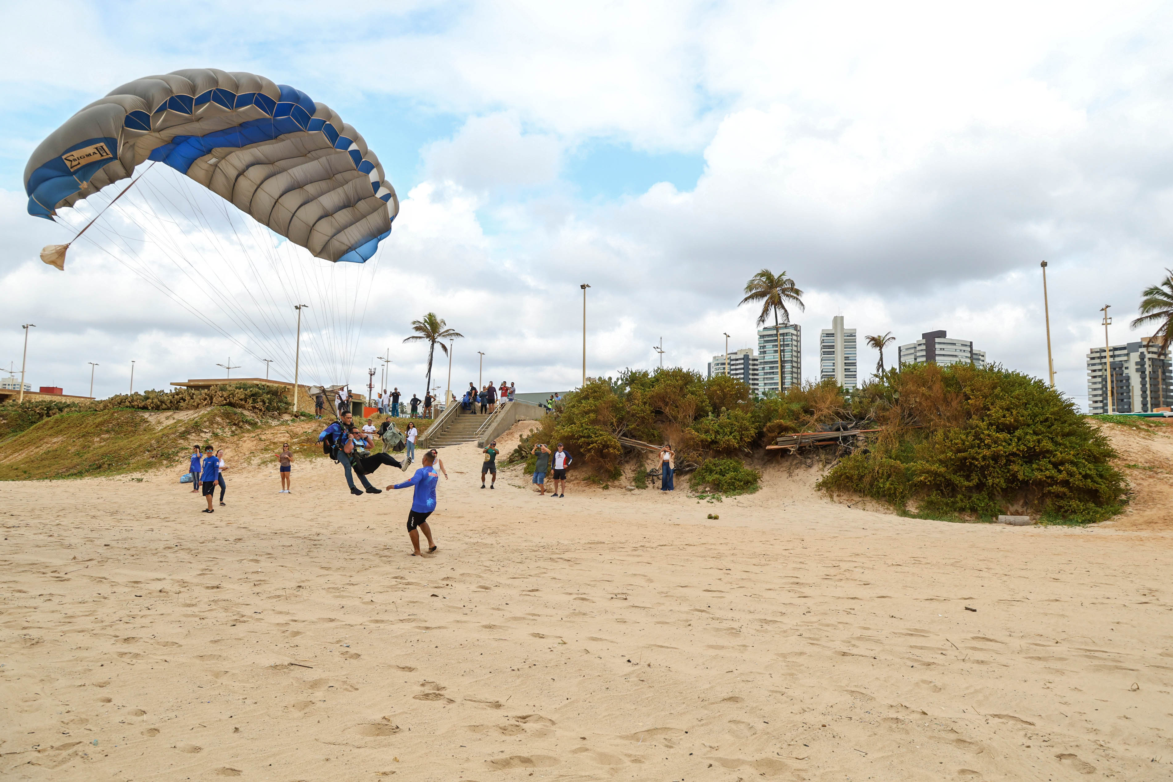 Os primeiros saltos de paraquedas na orla de Salvador foram realizados na manhã desta sexta-feira (7), na praia de Patamares. A iniciativa sela a parceria da Prefeitura, por meio da Secretaria de Cultura e Turismo (Secult), com o grupo Skydive Bahia Paraquedismo e a Orla Pituaçu, responsável pela concessão deste trecho de orla. Com saltos periódicos na região, a expectativa é atrair soteropolitanos e turistas interessados na prática.