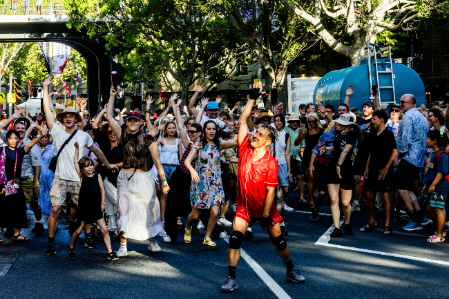 Um dos diferenciais da montagem é a participação ativa da plateia. Ao longo do trajeto, espectadores são convidados a integrar coreografias e movimentos que transitam entre o musical e o cinema de ação, dissolvendo a fronteira entre palco e público. A experiência aposta na combinação de tecnologia, música, teatro e dança contemporânea para criar um ambiente coletivo vibrante, inspirado na energia das festas populares.