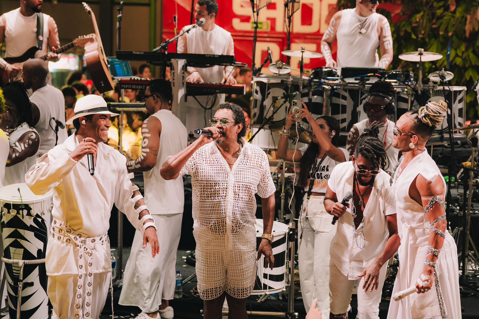 As participações especiais ampliaram ainda mais o clima de celebração. Igor Kannario subiu ao palco com sua performance intensa, enquanto o grupo É O Tchan, representado por Beto Jamaica e Cumpadre Washington, trouxe sucessos que atravessam gerações e colocaram o público para dançar. Um dos momentos mais emocionantes da noite foi protagonizado por Xexéu, ex-vocalista da Timbalada nos anos 1990, que resgatou memórias marcantes da trajetória da banda.